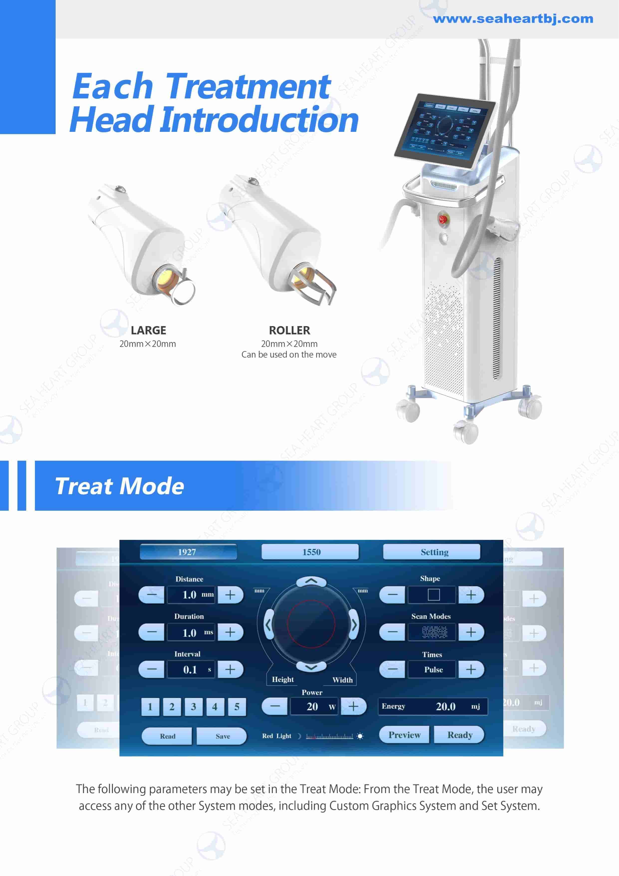 The versatility of the 1927 thulium laser allows for different treatment modes. Use these settings as a starting point for the SEAHEART UltraPixel system: