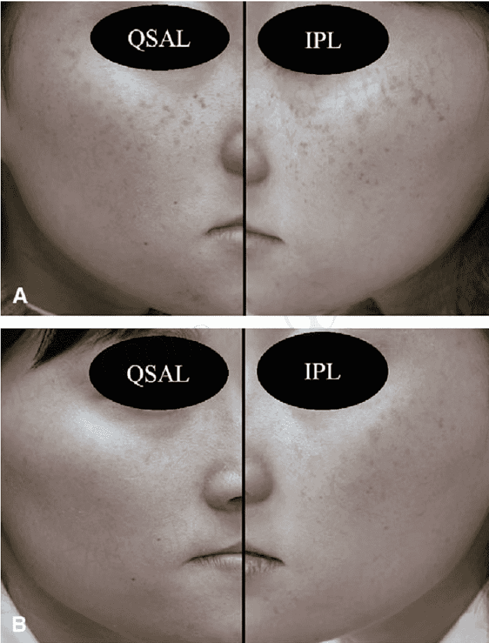 Split-face comparative study: Q-switched laser treatment showed better efficacy.