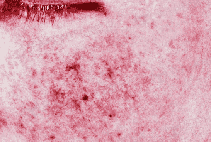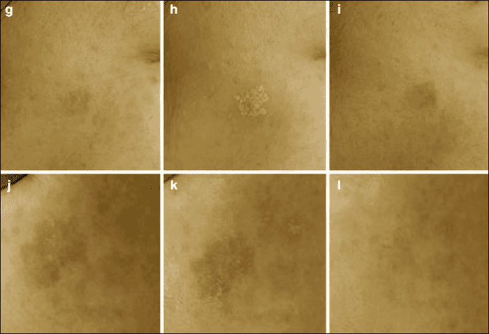 Bottom row: Grayish-white reaction, no pigmentation, most of the blemishes have faded.