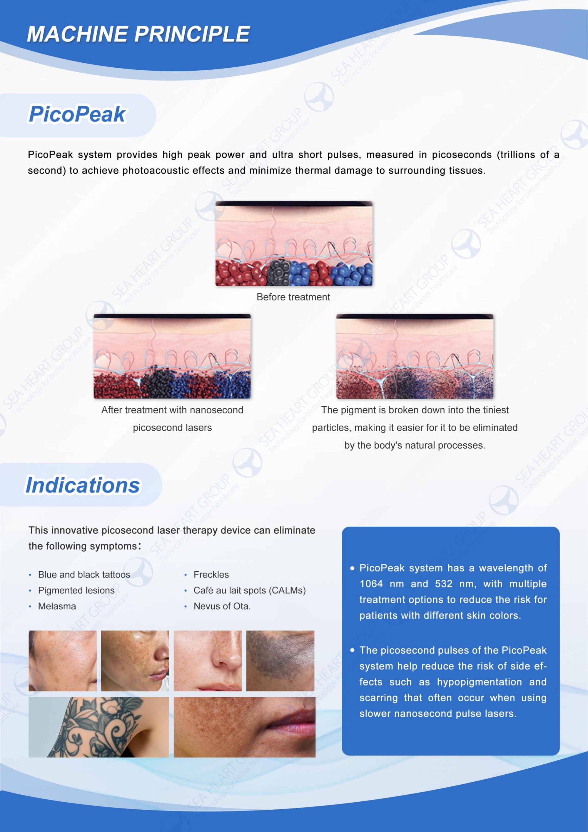 The PicoPeak 350ps Picosecond Laser Tattoo Removal Machine delivers ultra-short 350ps pulses for safe, precise, and effective tattoo and pigmentation removal. Fast recovery, stable performance, and advanced flat-top output make it the professional choice for skin aesthetics.