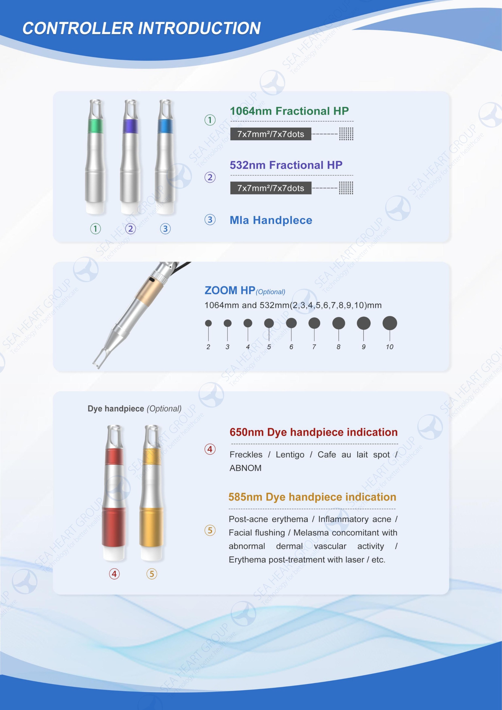 | Zoom Handpiece | 1064nm and 532nm(2,3.4,5,6.7,8, 9, 10)mm |