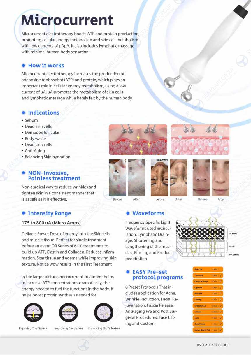 Ultrasound & BIO Microcurrent: Enhances skin absorption and lifts facial contours.