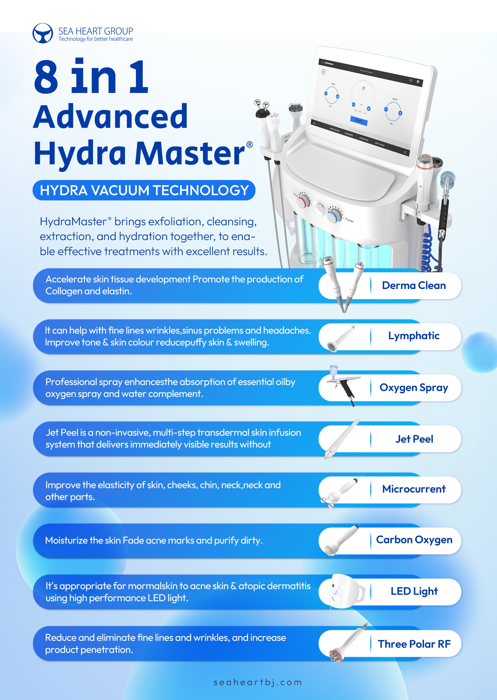 Don’t miss the chance to offer clients a cutting-edge facial experience with our 8 in 1 Hydra Derambrasion & Oxygen Jet Facial Machine. Contact us today to get pricing and shipping details.