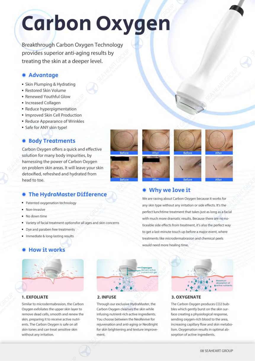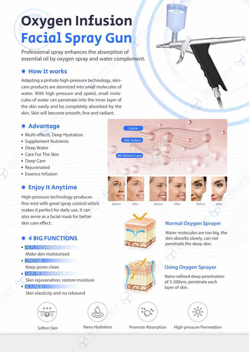Oxygen Jet Spray: Infuses pure oxygen and serums into the skin at high pressure for instant hydration and radiance.
