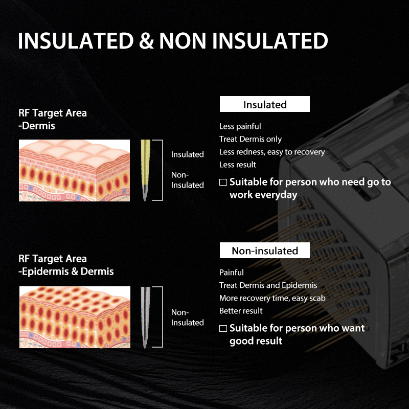 Unlike traditional microneedling, the MR50 uses ultra-fine insulated needles that precisely deliver RF energy into the skin’s deeper layers while protecting the surface, ensuring maximum effectiveness with minimal discomfort.