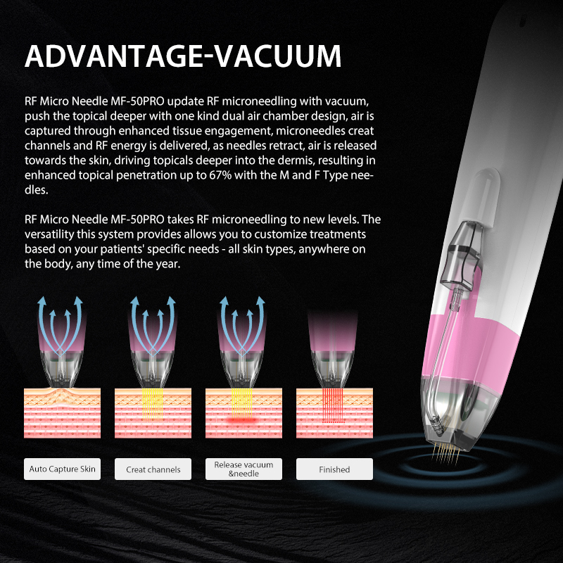 Solution: The MR50 penetrates 0.5–4.5mm deep to break down scar tissue, stimulate dermal renewal, and contract skin fibers.