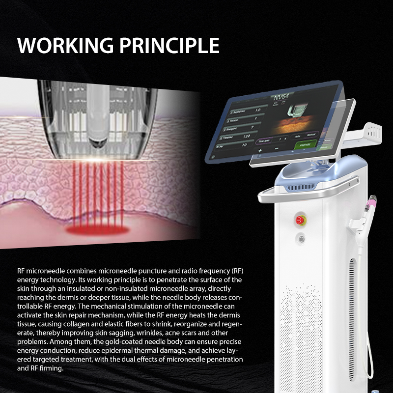 The RF Microneedling Machine combines microneedling with radiofrequency (RF) energy to deliver heat deep into the dermis, stimulating collagen and elastin production. This controlled injury triggers the skin's natural healing process, resulting in firmer, smoother, and more youthful skin – without surgery or downtime.