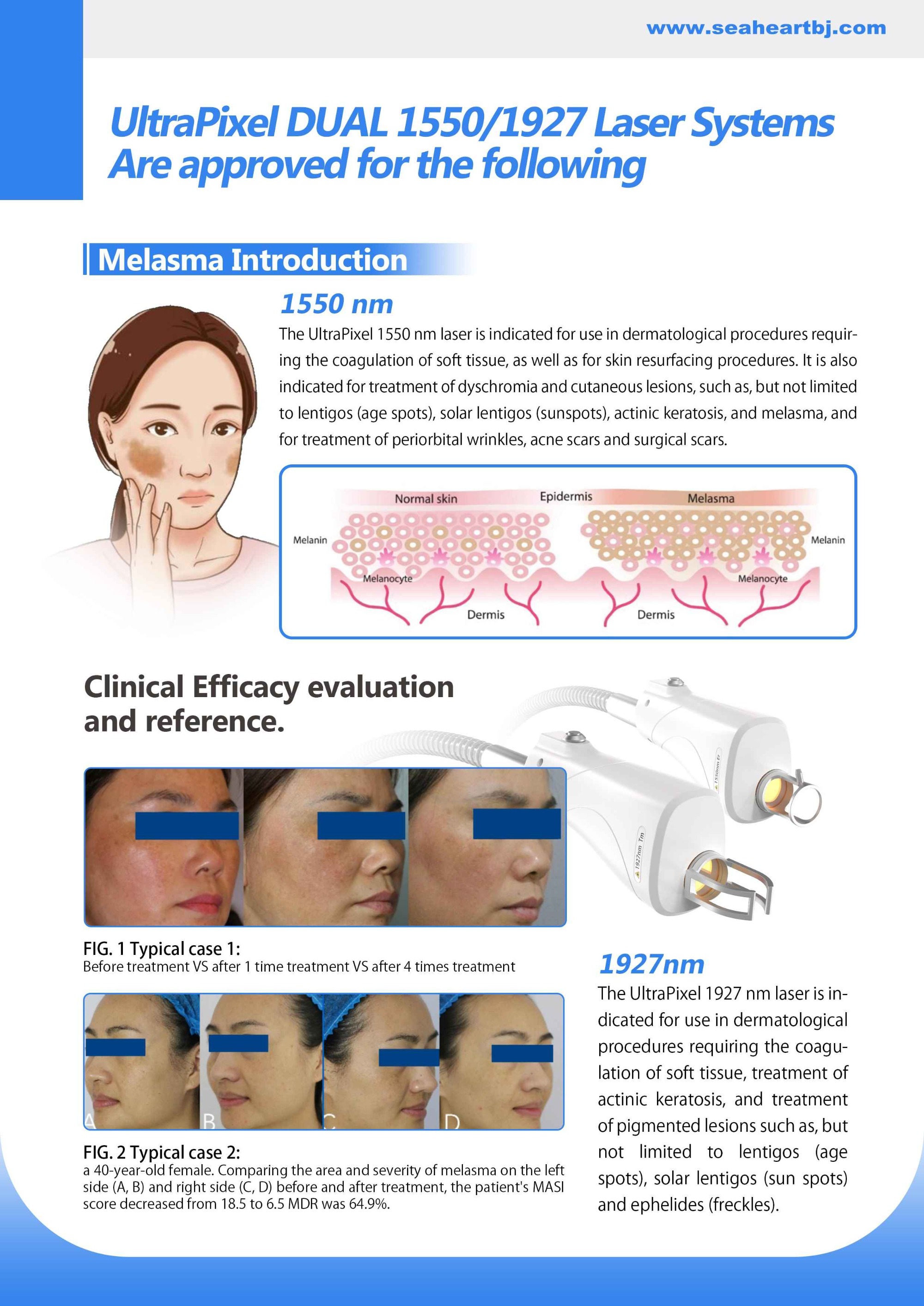 The UltraPixel Dual 1927 Thulium Laser System is a professional 1927 nm laser device designed for non-ablative skin resurfacing, pigment removal, and anti-aging rejuvenation. It offers fast results with minimal downtime, making it ideal for modern aesthetic clinics.